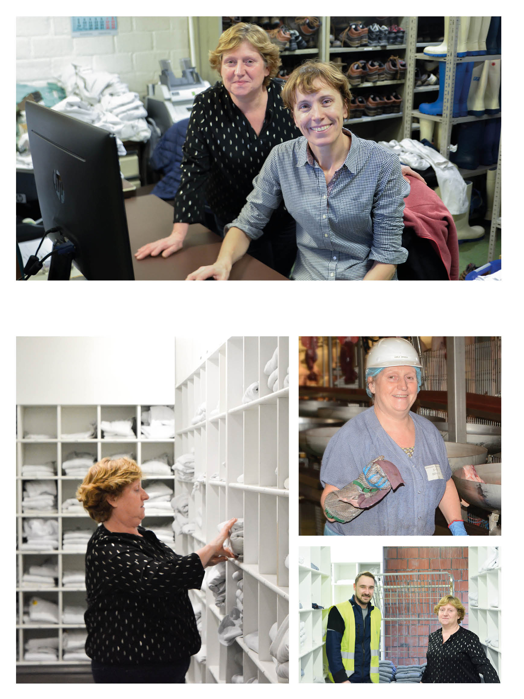Dinsdag ondersteun ik collega Sonja in ons personeelsmagazijn. Tijdens haar verlof mag ik het magazijn zelf fulltime draaiende houden. Hier start mijn werkdag om 8 uur en zorgen we er onder andere voor dat onze personeelsleden met de juiste werkkledij op de werkvloer verschijnen. Er lopen hier dan ook veel werknemers rond die voorzien moeten worden van kledij, veiligheidsschoenen, helmen… Zojuist kwam er een eventueel toekomstige collega langs die een test kwam uitvoeren op de werkvloer. Wij voorzagen hem van kledij op maat, zodat hij in de beste omstandigheden die test kon aanvatten. Natuurlijk is het hier ook een komen en gaan van werknemers waarvan de kledij hersteld of gewassen moet worden. Vandaag is de persoon die ons wasgoed komt ophalen toevallig aanwezig. Onze samenwerking loopt perfect. We kunnen samen nog altijd smakelijk lachen om die ene keer dat hij hier bijna met de verkeerde kledij was vertrokken. Gelukkig is het bij ons quasi onmogelijk dat er kledij of materiaal verloren gaat. Van elk personeelslid houden we immers een dossier bij. Daardoor weten we van iedereen wanneer hij of zij bijvoorbeeld nieuwe veiligheidsschoenen of een nieuwe overall kreeg. Zo komen onze producten in de veiligste en meest hygiënische omstandigheden tot stand. Niet alleen de productieruimtes waarin ik werk worden regelmatig aan interne en externe audits onderworpen, maar ook ons personeelsmagazijn. Traceerbaarheid is dus zowel voor ons vlees als voor ons werkmateriaal uiterst belangrijk!